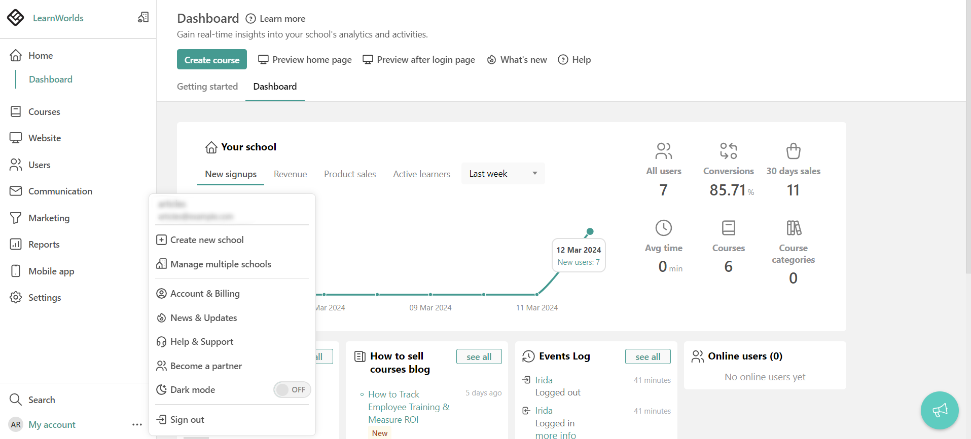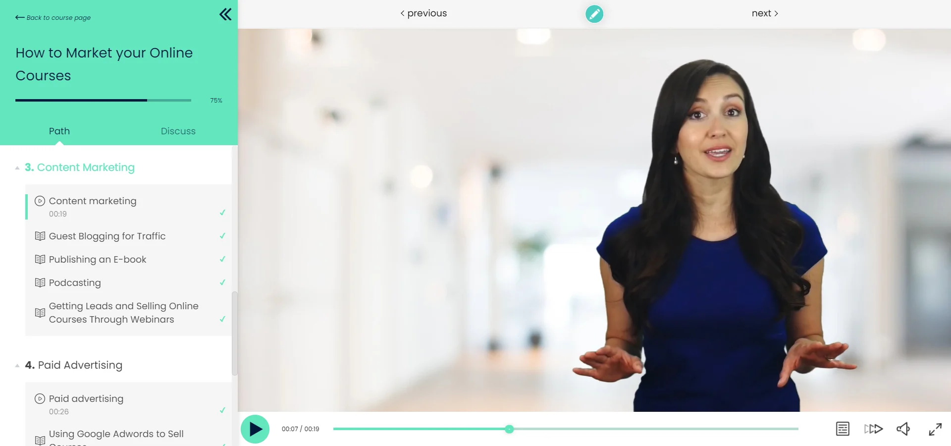 LearnWorlds je cloudová LMS platforma orientovaná na tvorbu a prodej interaktivních online kurzů. Uživatelé oceňují nástroje pro úpravu videí přímo ve webovém rozhraní (např. vkládání kvízů do videa) a možnost pokročilé gamifikace. Systém nabízí flexibilní brandování, různé platební modely (jednorázové kurzy, předplatné) a marketingové funkce, jako affiliate programy a slevové kupóny. LearnWorlds je často využíván nezávislými lektory, kouči a menšími firmami, které chtějí monetizovat svůj vzdělávací obsah. V ceně vyšších tarifů je white‑label branding, kde studující ani nepoznají, že se nejedná o vaši vlastní platformu. Pro podporu xAPI či SCORM však musíte sáhnout po vyšších (a drazších) měsíčních plánech.