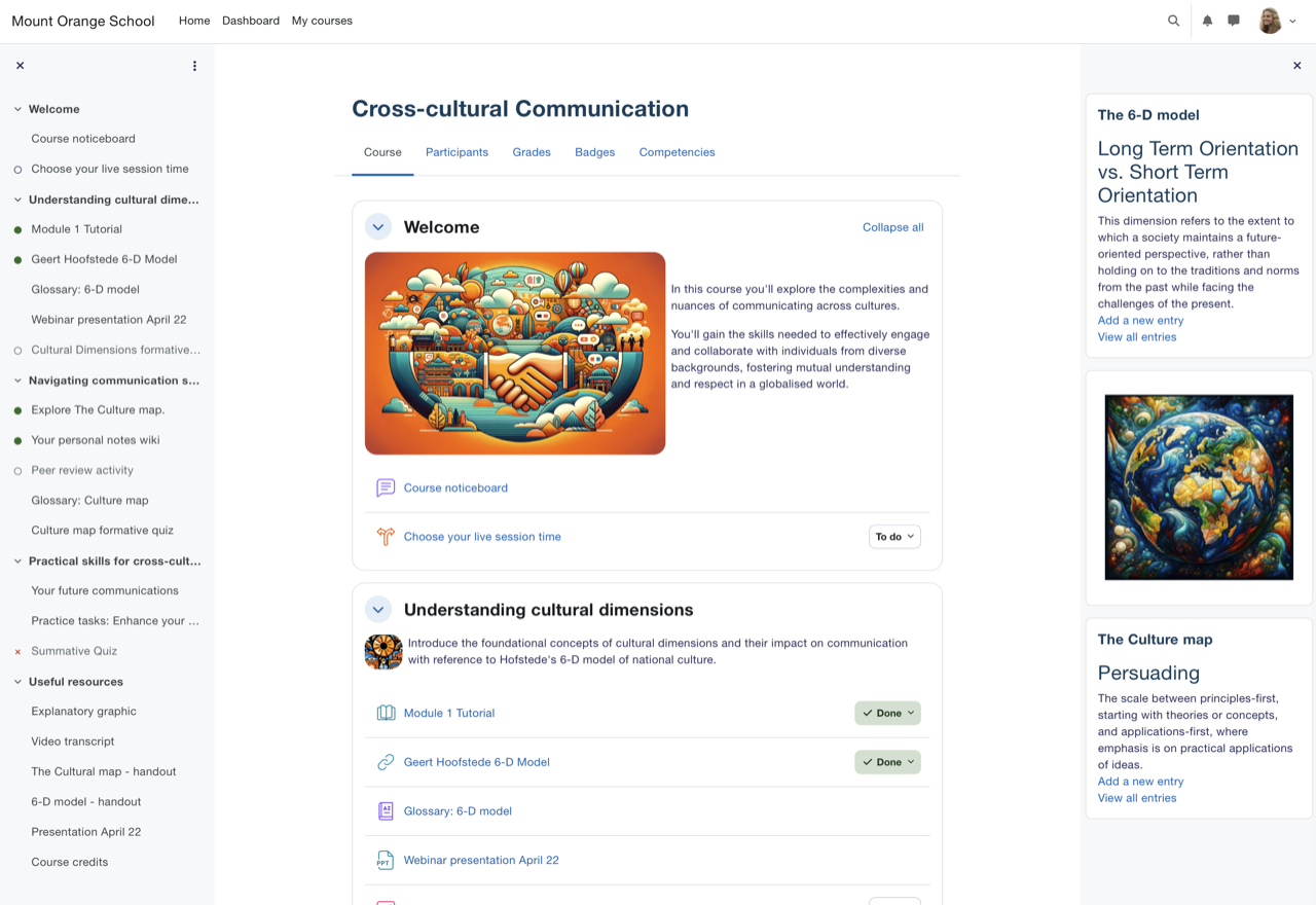 Mezi hlavní funkce Moodle patří tvorba kurzů a správa uživatelů včetně pokročilé správy oprávnění a rolí (učitel, student, tutor apod.). Dále nabízí pestrou paletu modulů: od testů a kvízů (s různými typy otázek) přes úkoly, diskusní fóra a interaktivní prvky (více jak 32 interaktivit H5P) až po možnost vydávat certifikáty. Samozřejmostí je i bohatý reporting vč. tvorby vlastních sestav: administrátoři sledují, kolik času studenti věnují studiu, kolik bodů získali v testech, a mohou vyhodnocovat statistiky dokončených kurzů. Moodle je přeložen do více jak 140 jazyků vč. češtiny a slovenštiny.